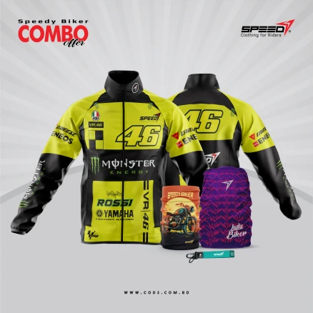 উৎপাদনকারী: CODS Clothing Co. – মেইড ইন বাংলাদেশরাইডের উত্তেজনা উপভোগ করুন অনন্য সুরক্ষা, আরাম এবং স্টাইলের সাথে। আপনার জন্য থাকছে SPEEDY Ultimate Rider’s Protection Combo — একটি প্রিমিয়াম ৪-ইন-১ গিয়ার বান্ডেল, বিশেষ করে বাইকারদের জন্য।